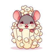 This cheerful rat loves popcorn as much as you do! Peeking from behind a giant, overflowing kernel, it’s a deliciously funny sight.